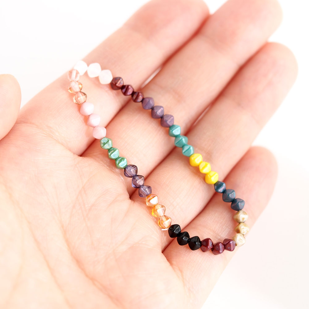 チェコビーズ バイコーンビーズ 4mm 約30個 全14カラー ガラスビーズ チェコガラス 手作り ハンドメイド 手芸 素材 材料 パーツ ピアス イヤリング