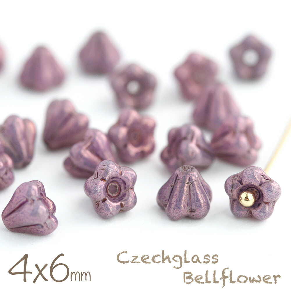 チェコビーズ ベルフラワー 4×6mm チョークホワイトアメジストラスター 20個 アクセサリーパーツ ハンドメイド 材料 素材 パーツ ピアス イヤリング