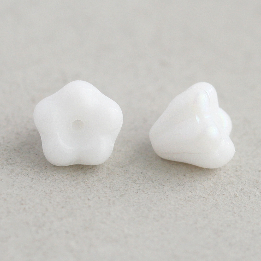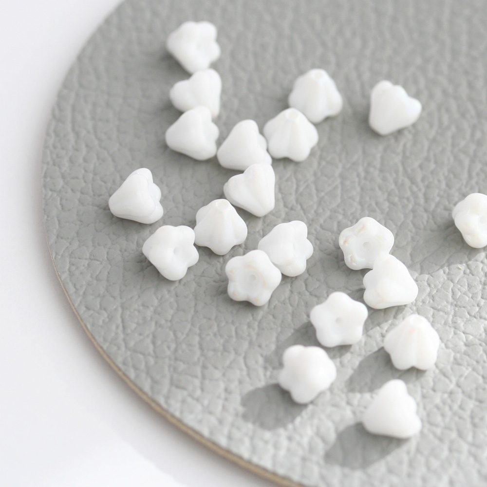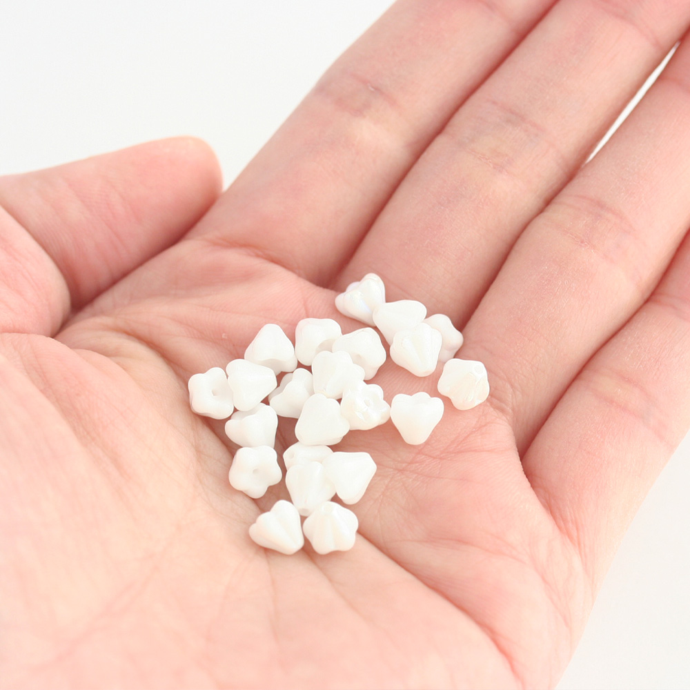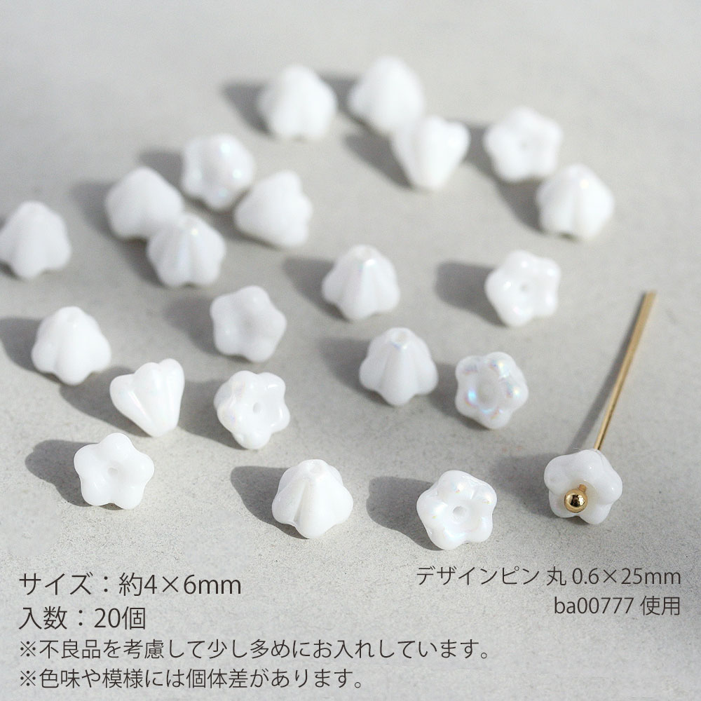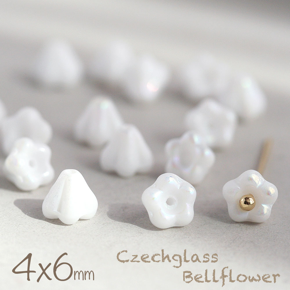 チェコビーズ ベルフラワー 4×6mm チョークホワイトオーロラ 20個 お花 白 フラワー アクセサリーパーツ ハンドメイド パーツ ピアス イヤリング 手芸 素材