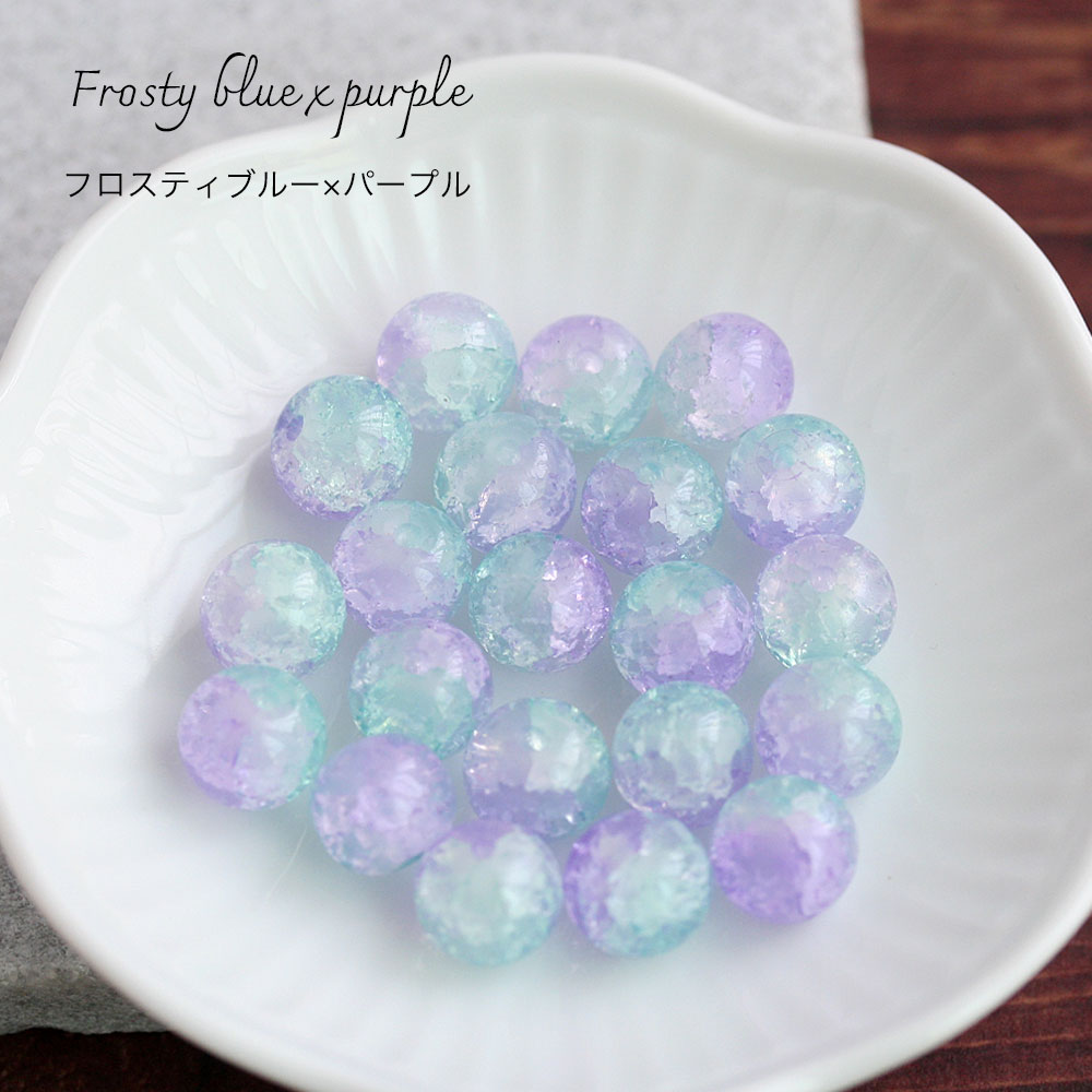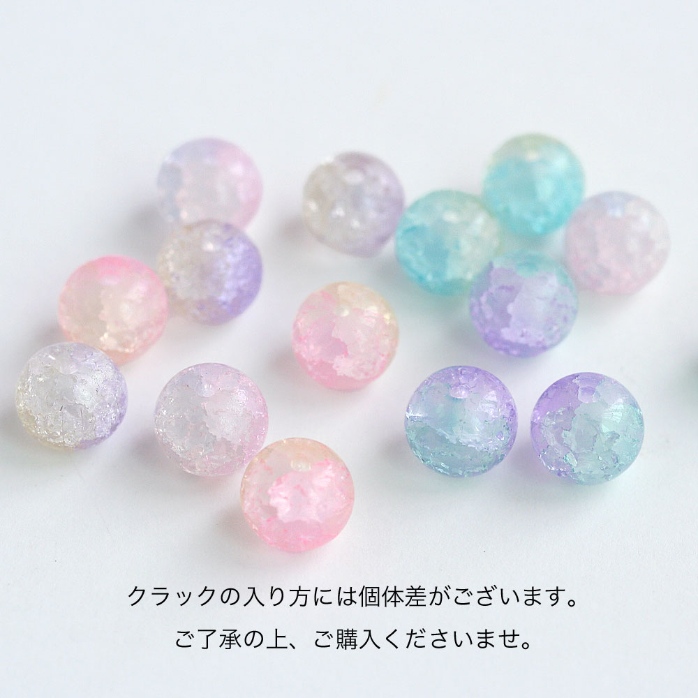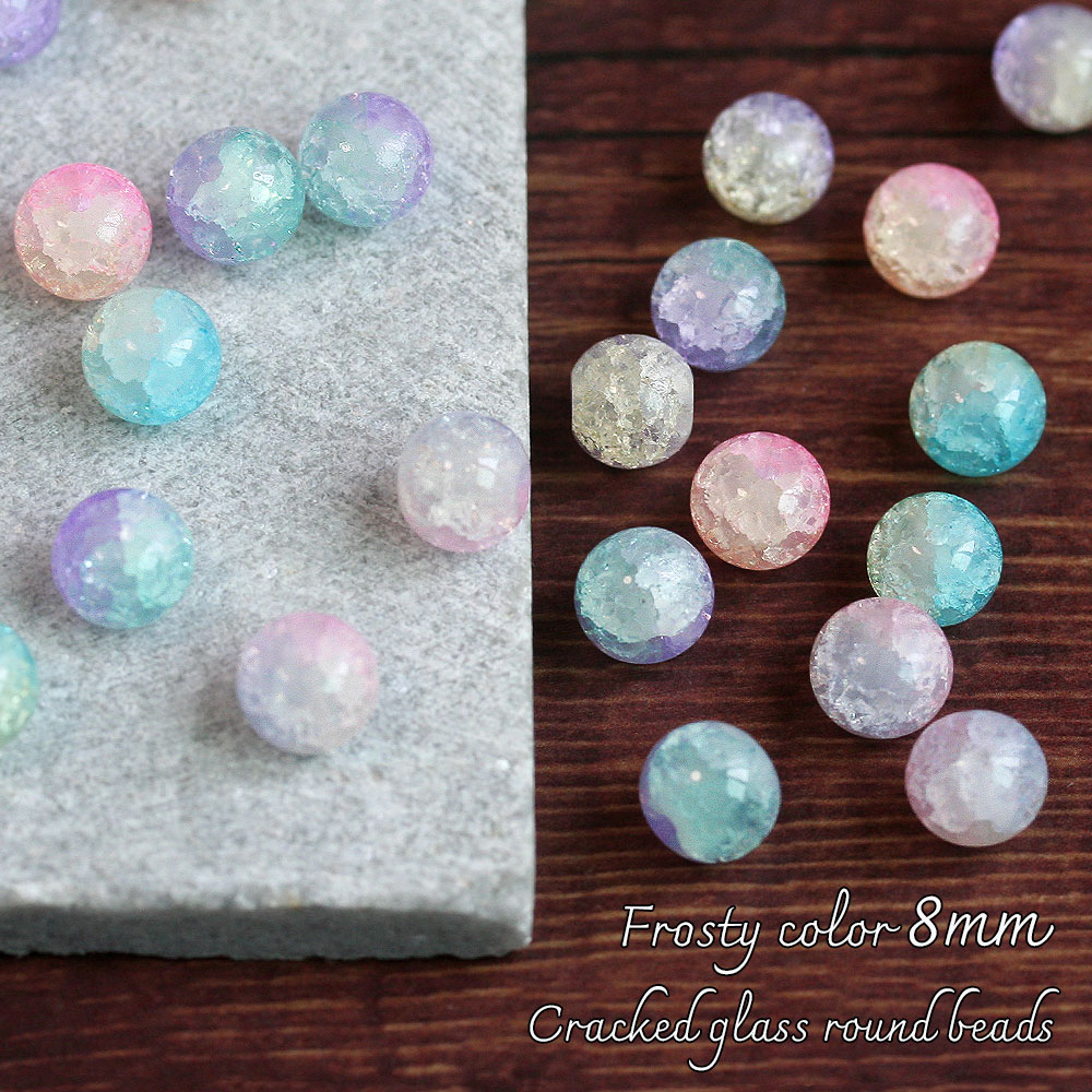 クラック模様が施された、透明感のあるガラスの丸玉ビーズです。夏らしいフロストカラーが入荷いたしました♪ピアスやネックレス等アクセサリーや小物作りにおすすめです。
