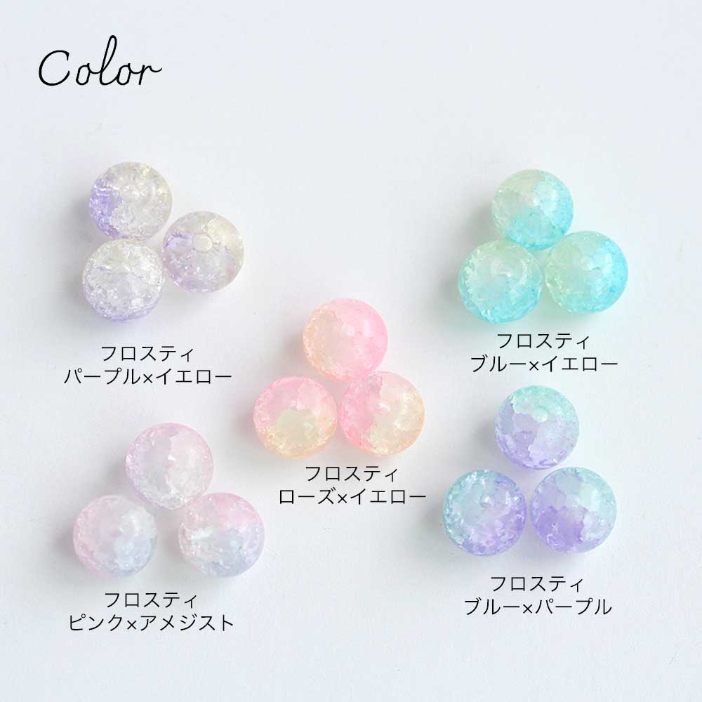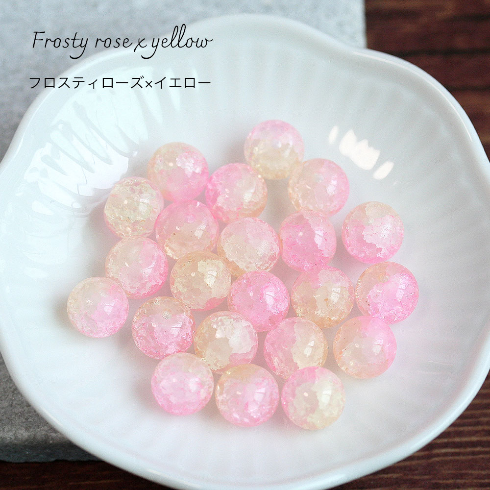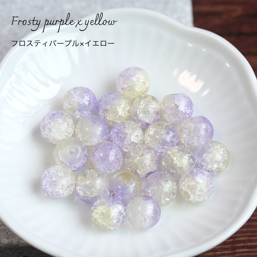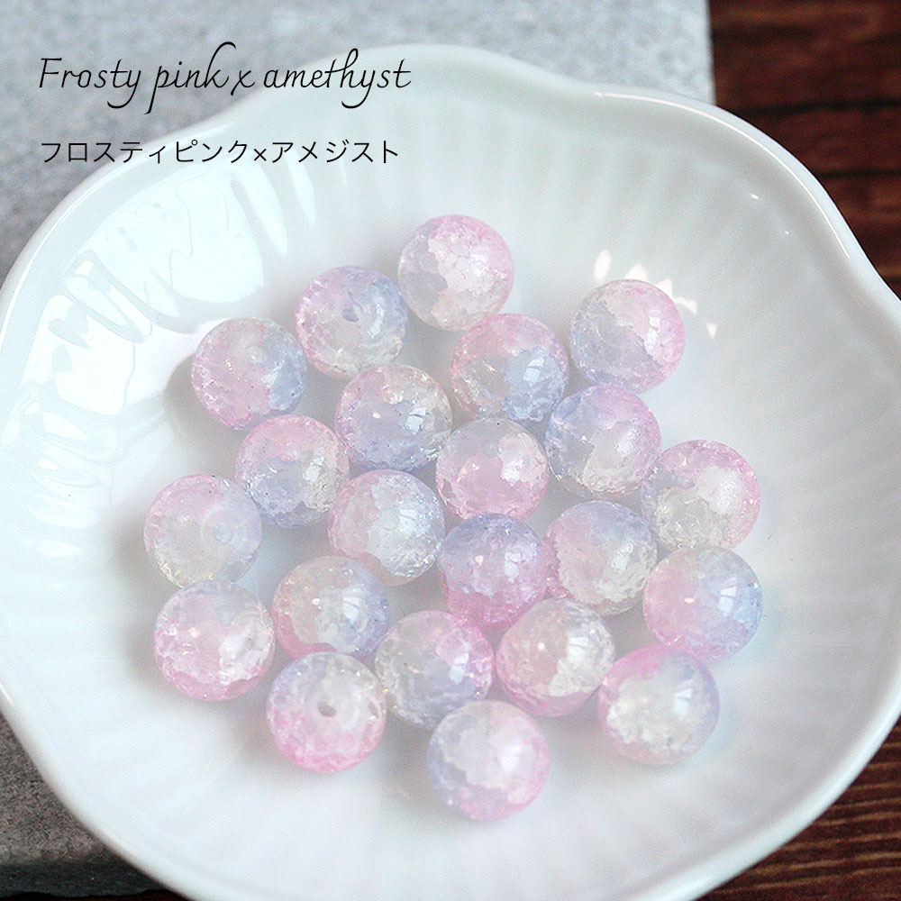 クラック模様が施された、透明感のあるガラスの丸玉ビーズです。夏らしいフロストカラーが入荷いたしました♪ピアスやネックレス等アクセサリーや小物作りにおすすめです。