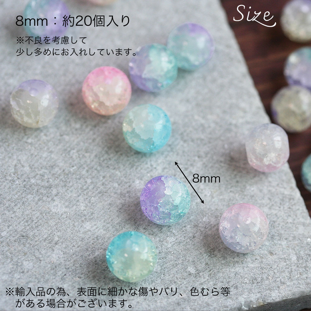 クラック入りガラスビーズ 丸玉 8mm 20個入 グラスビーズ アクセサリーパーツ ハンドメイド ひび割れ 手芸 材料 素材