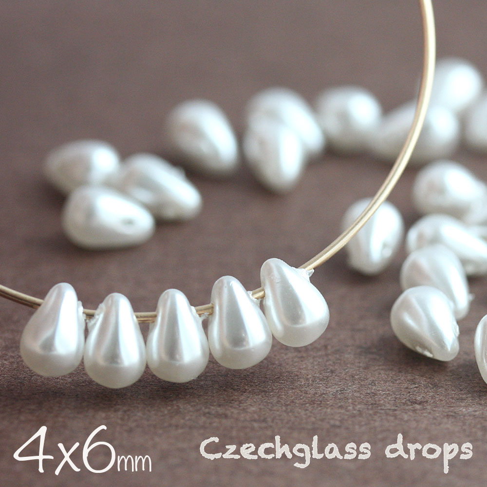 ぽってりとしたフォルムが可愛いドロップ型のチェコガラスビーズです。ピアスやネックレス等アクセサリーや小物作りにおすすめです。