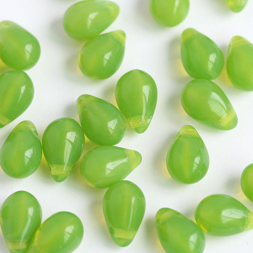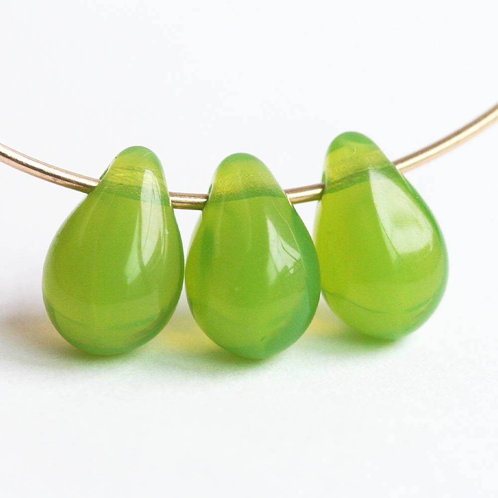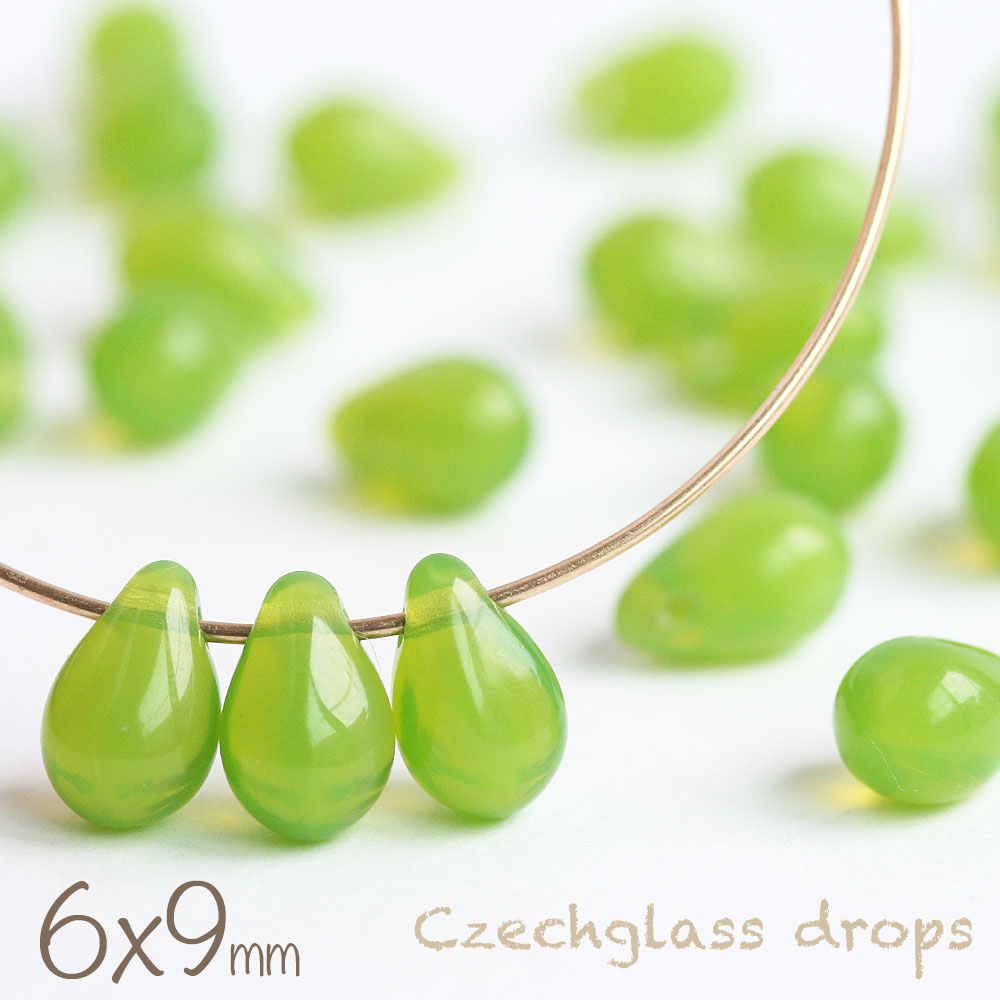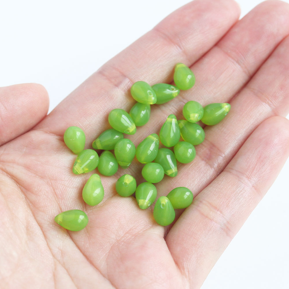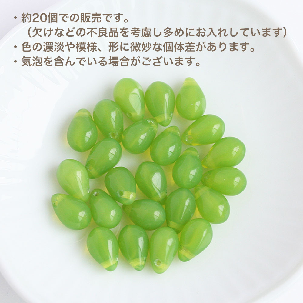 ぽってりとしたフォルムが可愛いドロップ型のチェコガラスビーズです。ピアスやネックレス等アクセサリーや小物作りにおすすめです。