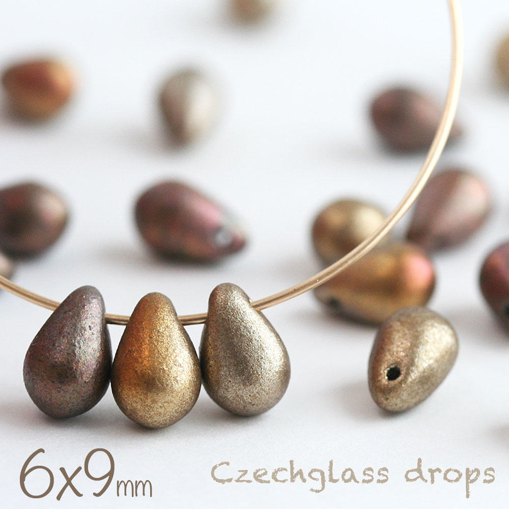 ぽってりとしたフォルムが可愛いドロップ型のチェコガラスビーズです。ピアスやネックレス等アクセサリーや小物作りにおすすめです。