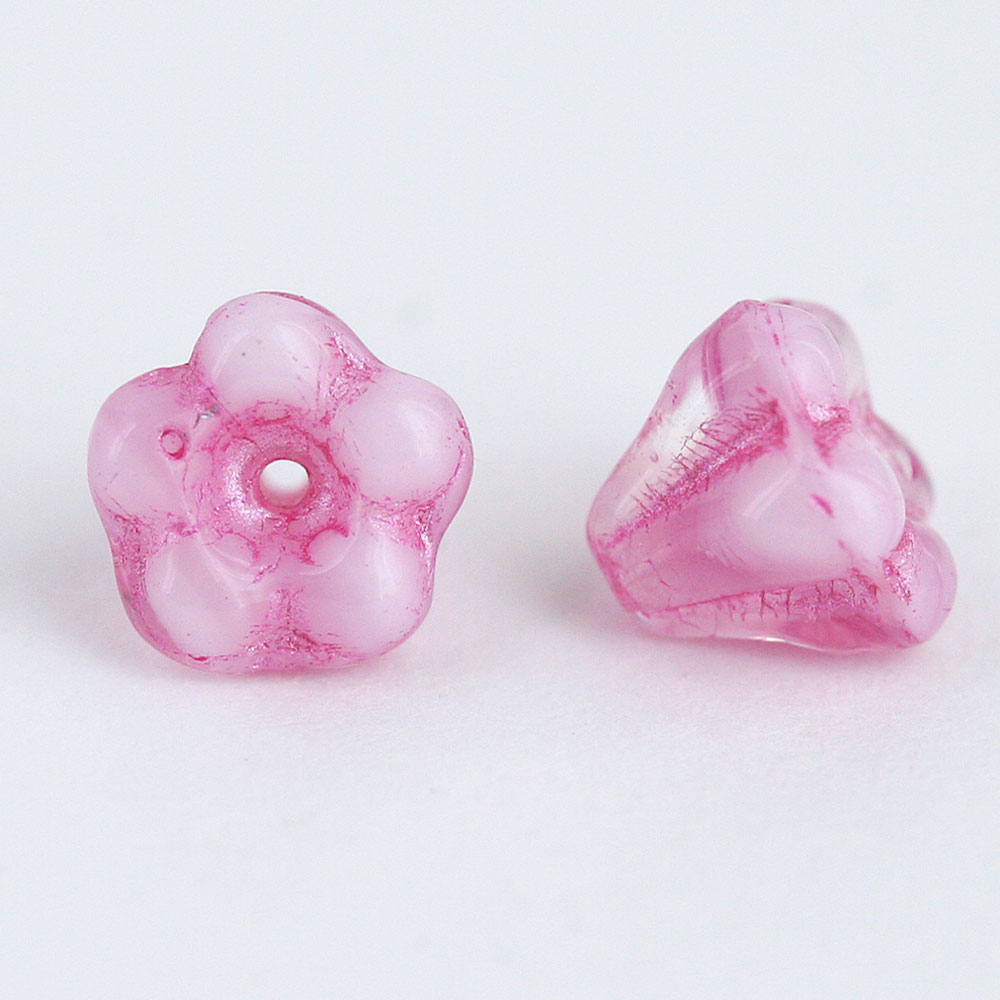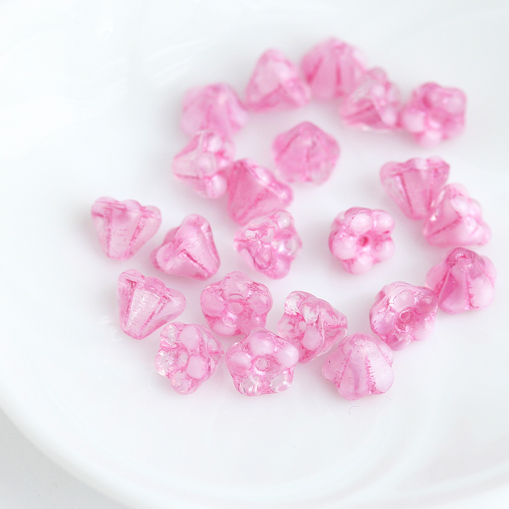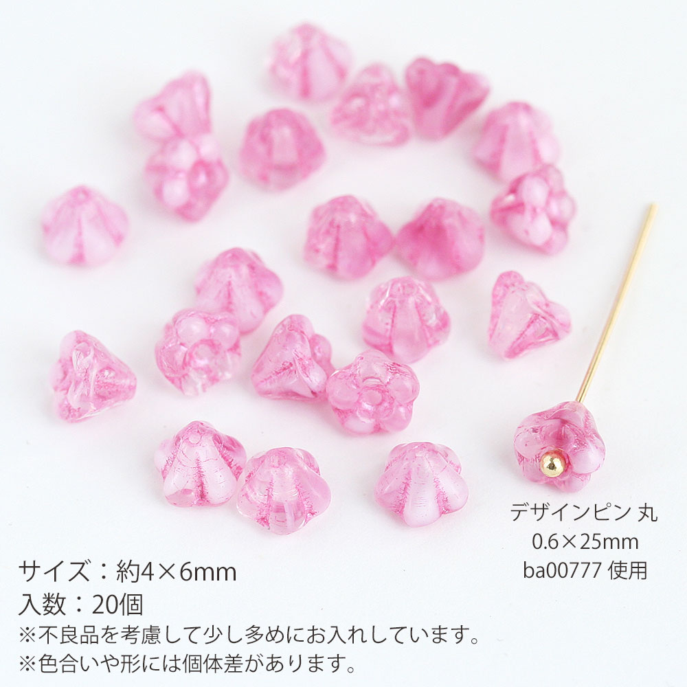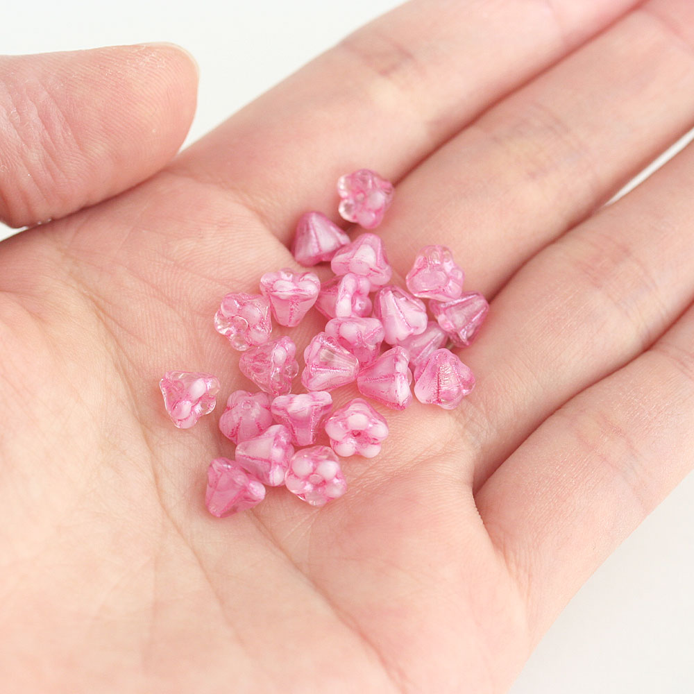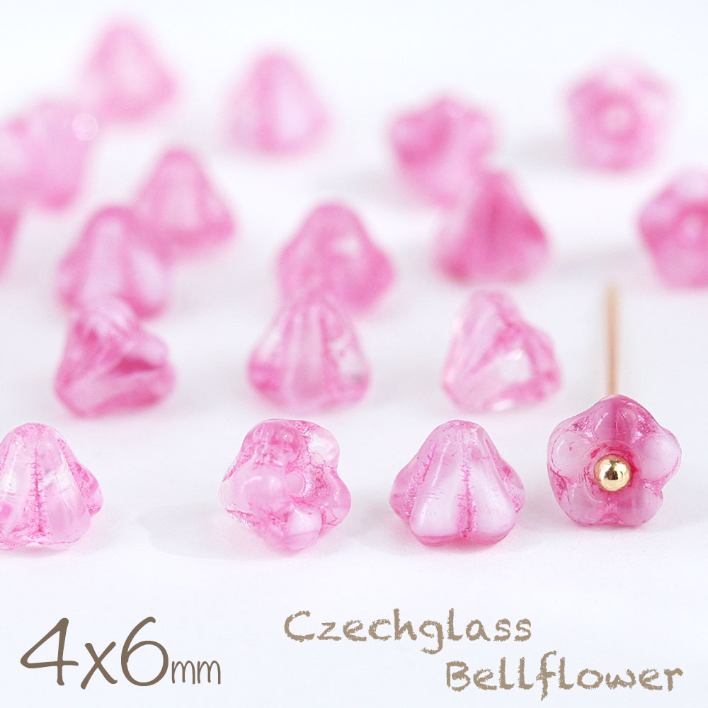 チェコビーズ ベルフラワー 4×6mm ホワイトマーブルローズライン 20個 アクセサリーパーツ ハンドメイド パーツ ピアス イヤリング 手芸 ピンク 紫 お花 花型