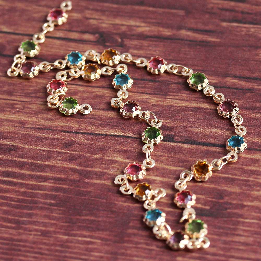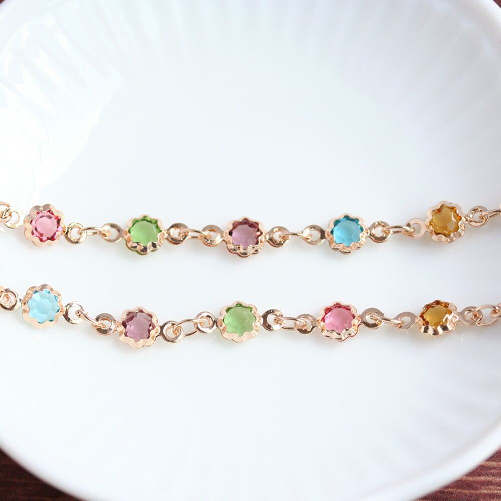 デザインチェーン No.7 ゴールド 20cm 手芸 アクセサリーパーツ ハンドメイド パーツ カラフル カラークリスタル 繋ぎパーツ ピアス イヤリング