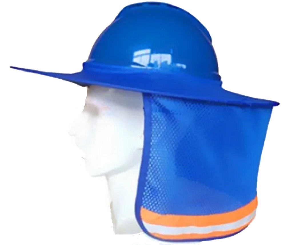 ヘルメット用 日よけ メッシュ たれ付き 反射付き 簡単収納 ブルー(ヘルメット別売)