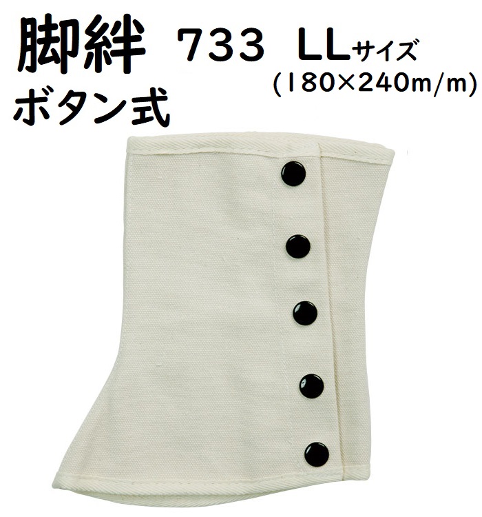 脚判きゃはん(足カバー) ■メーカー:南村製作所 ■品番:733 ■型式:ボタン式 ■サイズ:LL(180×240m/m) ■素材:綿、ポリエステル