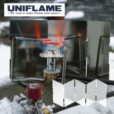 UNIFLAMEテーブルトップバーナーUS−Dに適合.強い横風から炎を守り,効率良く調理が可能.本体はステンレス板5枚を屏風状に折り畳めますので,収納は非常にコンパクト!5枚のパネルをアレンジする事により,小型バーナーにも使用できます.コンパクト収納屏風状に折り畳めます一部折畳み小型シングルバーナーにも使用可能収納時:155×90×7mm(厚)重量:約175g材質:ステンレス鋼(ハード)【爆買】