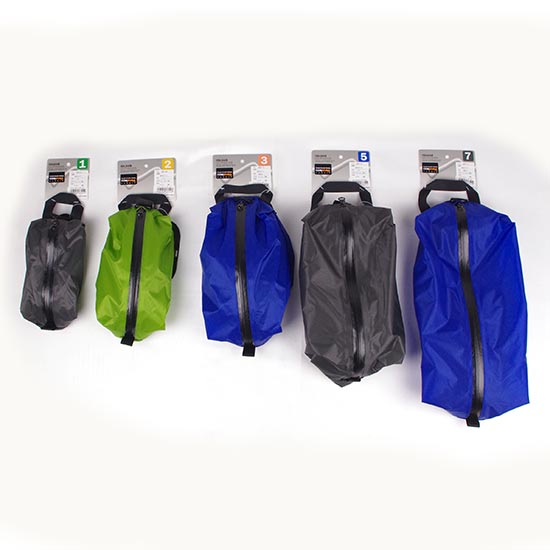 登山や旅行に便利な30デニールのシリコナイズド・コーデュラ素材と止水ファスナーを併用したポーチです。サンプルテストでは、小型のモデルが小物や行動食用にとても使いやすく便利でした。