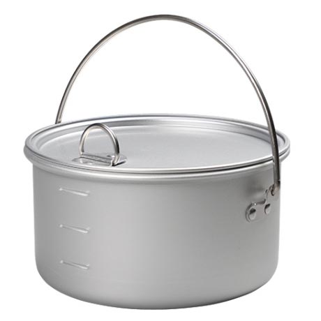 ULハイク界隈で惜しまれつつも生産が終了した商品を日本製で復活させました。焚火でもガンガン使える様に特殊コーティングはせずにアルマイト加工のみとし、取り外し可能なベイルハンドルやフラットなフタなどはオリジナルをそのまま踏襲。エバニューのラインナップに加える為にサイズを調整しTi570cupが入る様にしてあります。シングルバーナーでの調理はもちろんですが焚火での調理でもしっかり対応出来ます。どんどん焼き色が付いて自分オリジナルのクッカーに。ソロで動くキャンパー・トレッカーに丁度良いサイズです。トライポッドから吊り下げる為のベイルハンドルは1方は下までしっかり畳める様になり、逆方向は下まで倒れずに途中で立ち上がった状態にキープ出来る様にデザインされています。また、蓋の上に炭を置いて上からも熱を加える事が出来るのでオーブン系の料理にも使えます。このサイズならこのポットで直接食事を摂る事が多いので、ハンドルを使いたい場合はEBY169ハンドルショート(アルミ製)が便利です。コジ―を付けて使う場合はEBY228NPクッカーケース#1がハンドルを付けたままでも使えます。