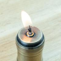 点火はロウソク同様、マッチやライターで火を灯してください。芯の露出は3〜5mm程度が適量です。