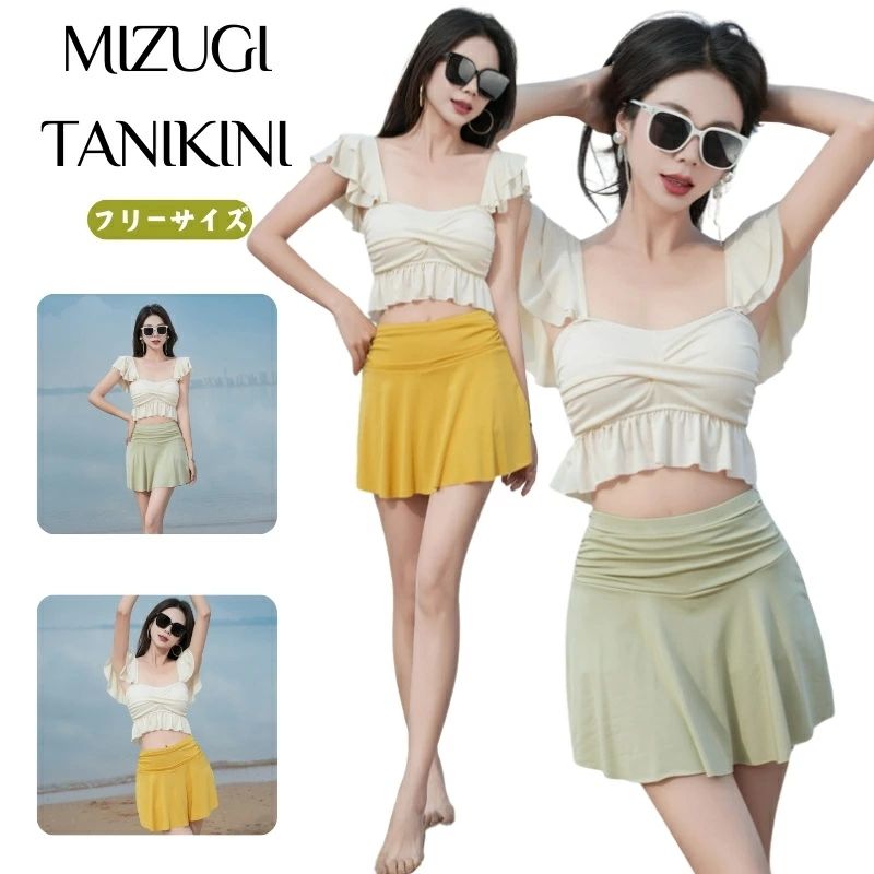韓国 水着 タンキニ レディース 体型カバー 黒 フリル 小胸 2点セット 高校生 水着 女の子 中学生 10代 20代 30代 水着 タンキニ 胸盛れる 無地 水着 可愛い