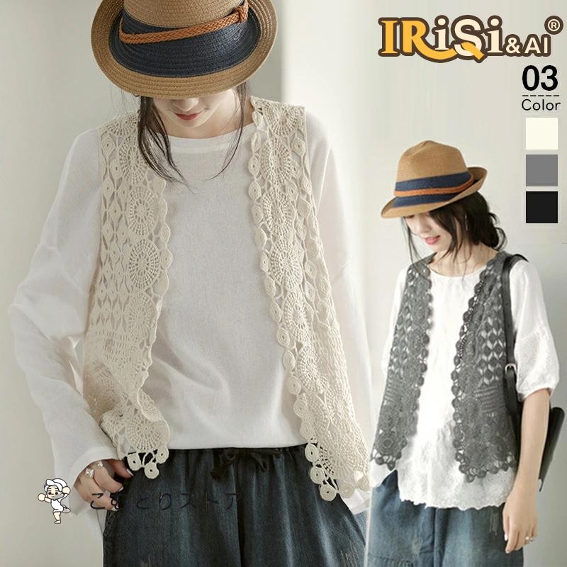 新春初売りセール クロシェ ベスト メッシュ レディース 薄手 綿 夏 ベスト おしゃれ サマー ニット 前開き トップス 大きいサイズ ショート丈 花柄 透かし編み