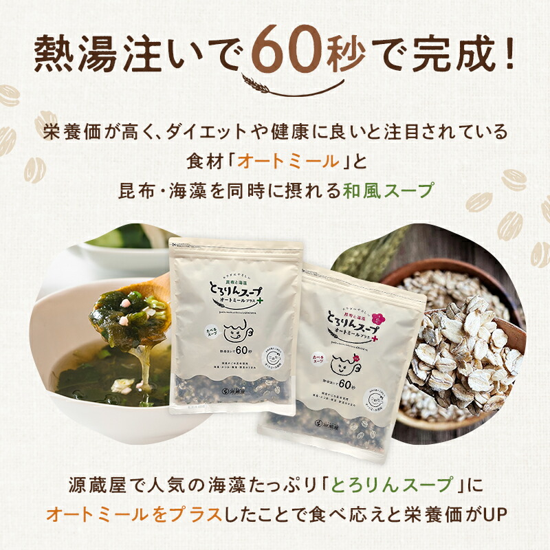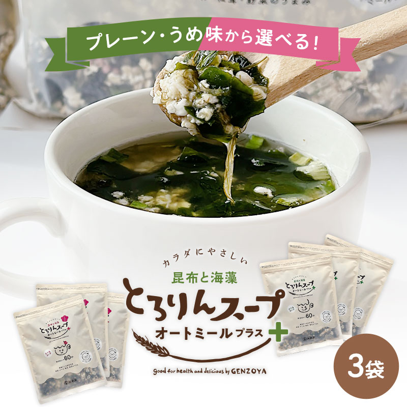 スープ オートミール 昆布と海藻 とろりんスープ 300g[約50杯分]×3袋 即席スープの素 ダイエット 食物繊維 1食約15kcal 国産昆布 業務用 (プレーンorうめ味)