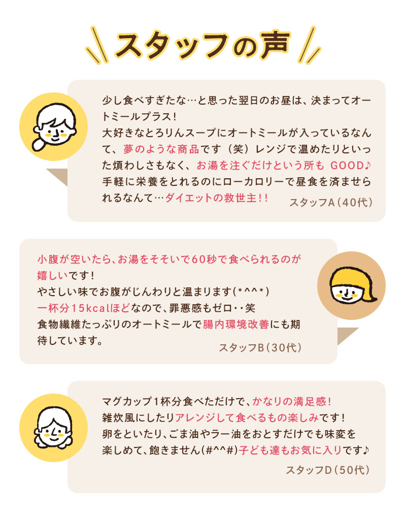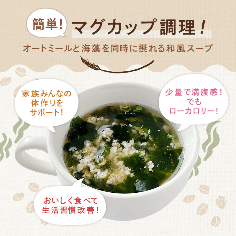 ■原材料 オートミール(有機オーツ麦(オーストラリア産又はフィンランド産又はイギリス産))、食塩(国内製造)、乾燥わかめ、昆布(国内産)、ねぎ、がごめ昆布(国内産)、砂糖、たん白加水分解物、野菜エキスパウダー、鰹節粉末、椎茸粉末、昆布粉末、粉末醤油、醸造酢/調味料(アミノ酸等)、甘味料(甘草、ステビア)(一部に小麦、大豆を含む)