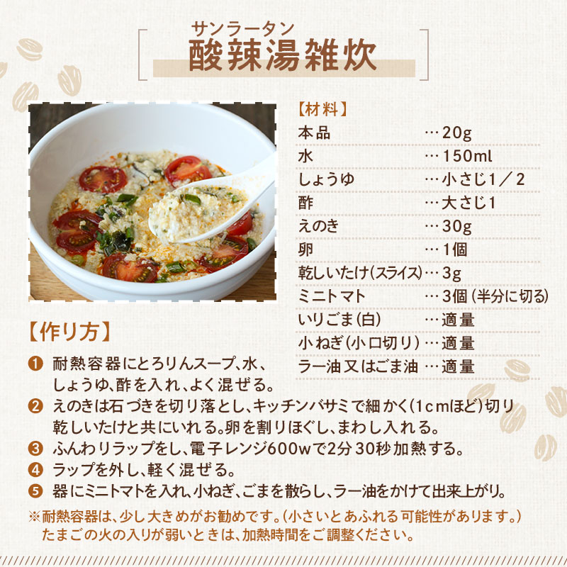 ■原材料 オートミール(有機オーツ麦(オーストラリア産又はフィンランド産又はイギリス産))、食塩(国内製造)、乾燥わかめ、昆布(国内産)、ねぎ、がごめ昆布(国内産)、もち米、うるち米、梅パウダー(デキストリン、分岐オリゴ糖、梅肉、梅酢、シソパウダー)、砂糖、たん白加水分解物、鰹節粉末、昆布粉末、粉末醤油、椎茸エキスパウダー、醸造酢/調味料(アミノ酸等)、甘味料(カンゾウ、ステビア)、酸味料、アントシアニン色素、香料、増粘剤(キサンタン)、着色料(ビートレッド)、(一部に小麦、大豆を含む)