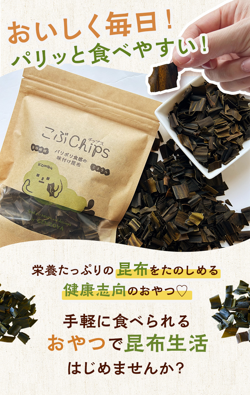 昆布 おやつ昆布 おつまみ昆布 昆布スナック 昆布チップス パリポリ昆布 味付き昆布 北海道産昆布100% 昆布のお菓子 チャック付き袋 保存食 こぶChips 65g×2袋