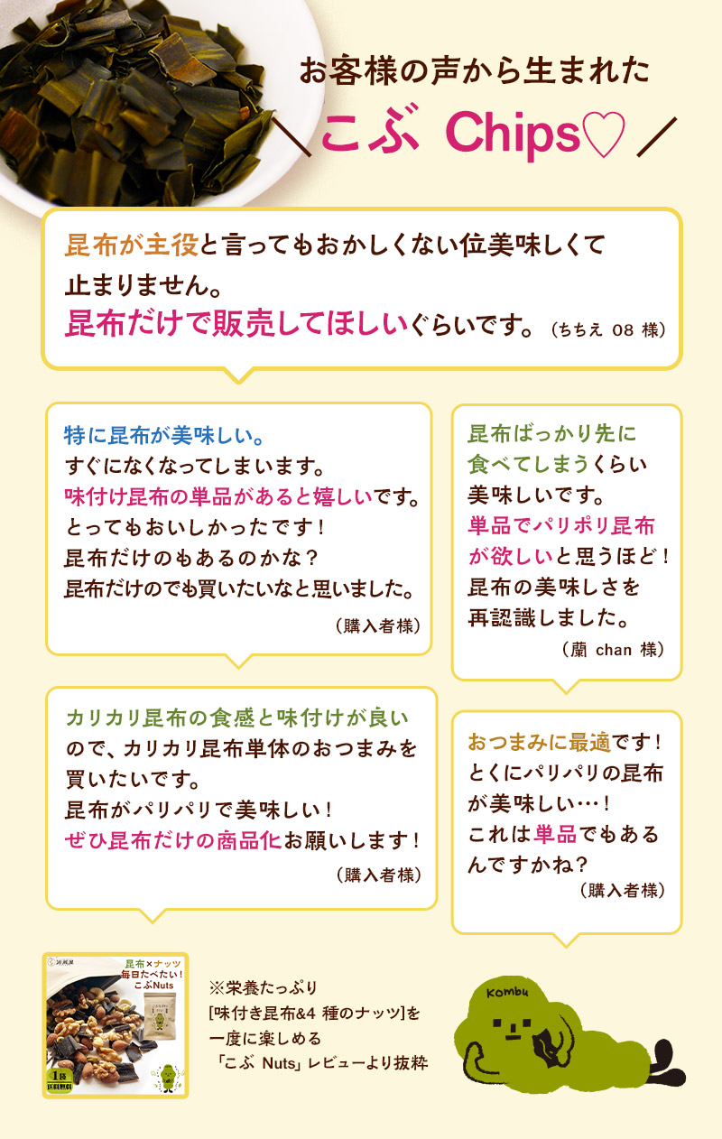 「美味しい!」のレビューと共に「昆布だけの商品を販売してほしい!!」というお声を多数いただきました。
