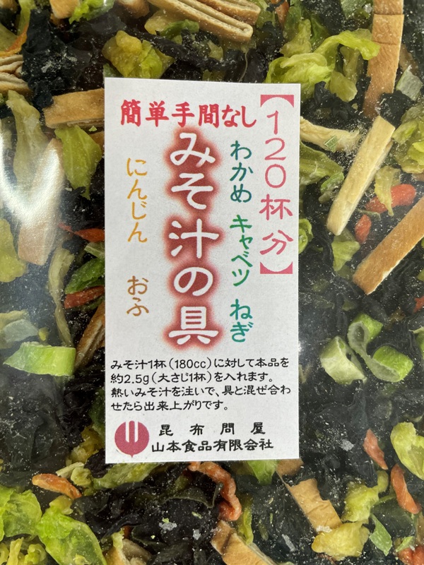 | 具材はキャベツ・わかめ・にんじん・麩・ねぎ |