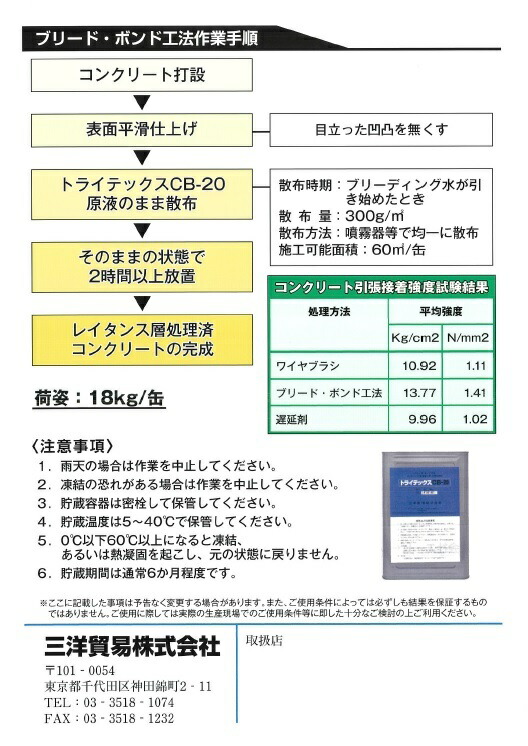 トライテックス CB-20 コンクリート打継面処理剤 コンクリート打継面処理剤 レイタンス除去 18kg 1缶 接着性向上 打継処理 コンドーテック 土木工事 送料無料