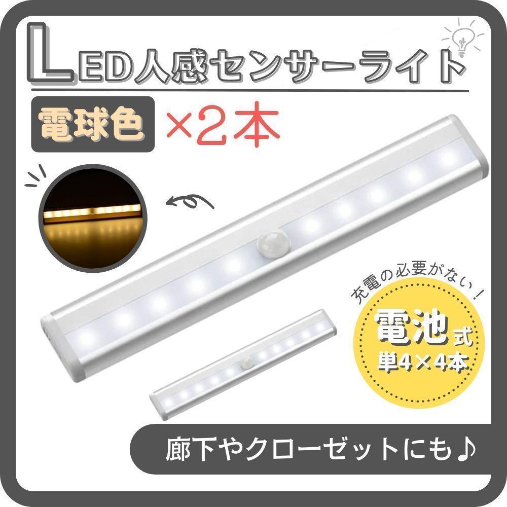 LEDセンサーライト 電球色 2本 人感センサー 電池式 室内足下灯 屋内