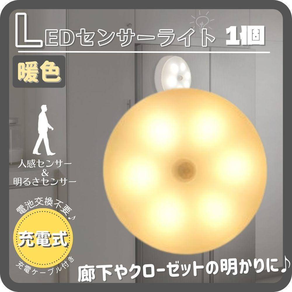 LEDセンサーライト 1個 暖色 人感センサー USB充電 室内 足下灯