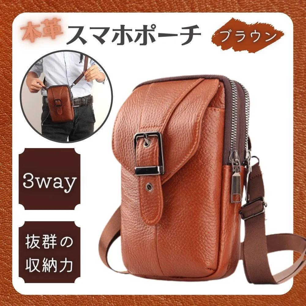 スマホポーチ 大容量 メンズ 牛革 ショルダーバッグ 斜めがけ ブラウン