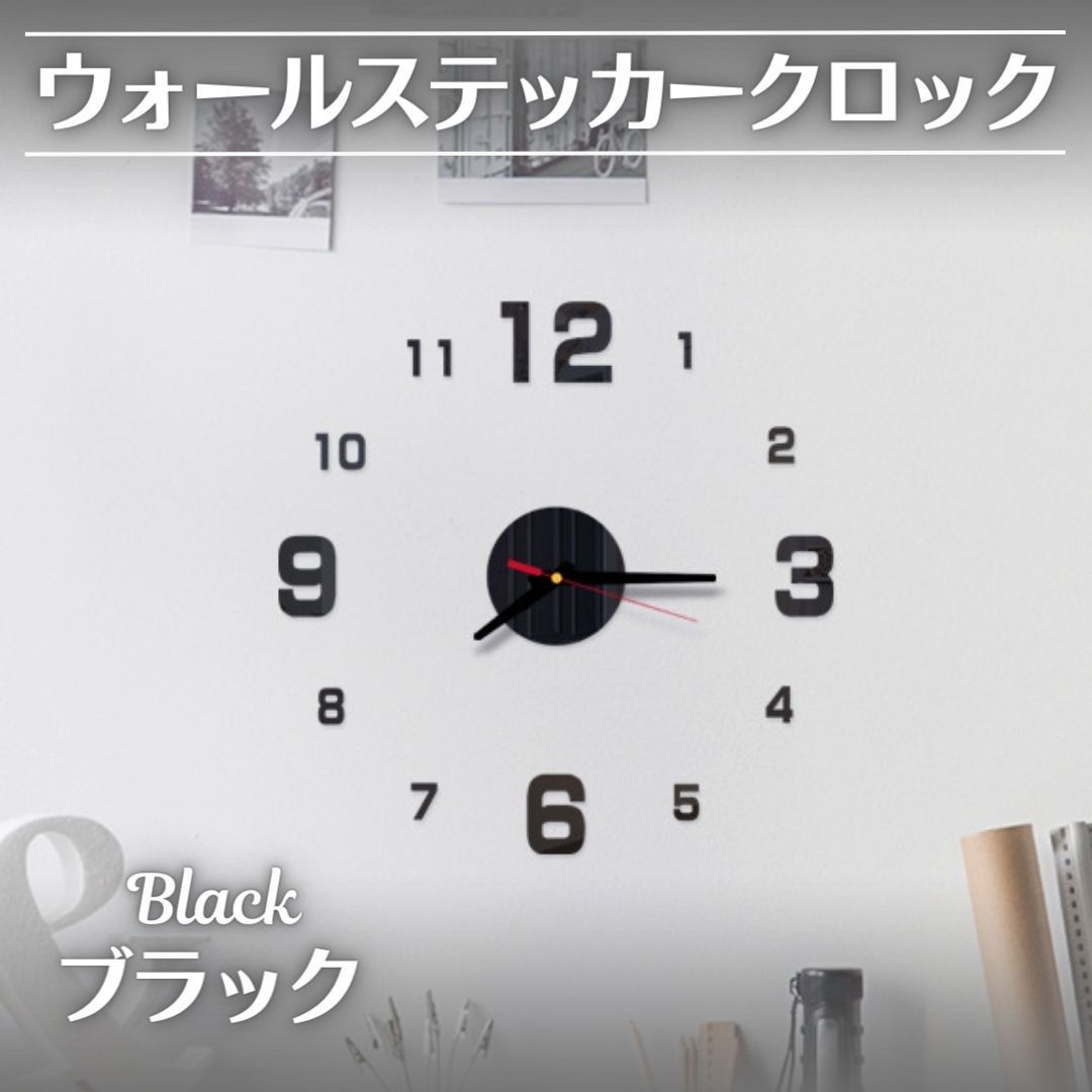 ウォールクロック 壁掛け時計 3D DIY 壁時計 ウォールステッカー クロック 韓国 ブラック