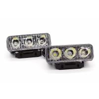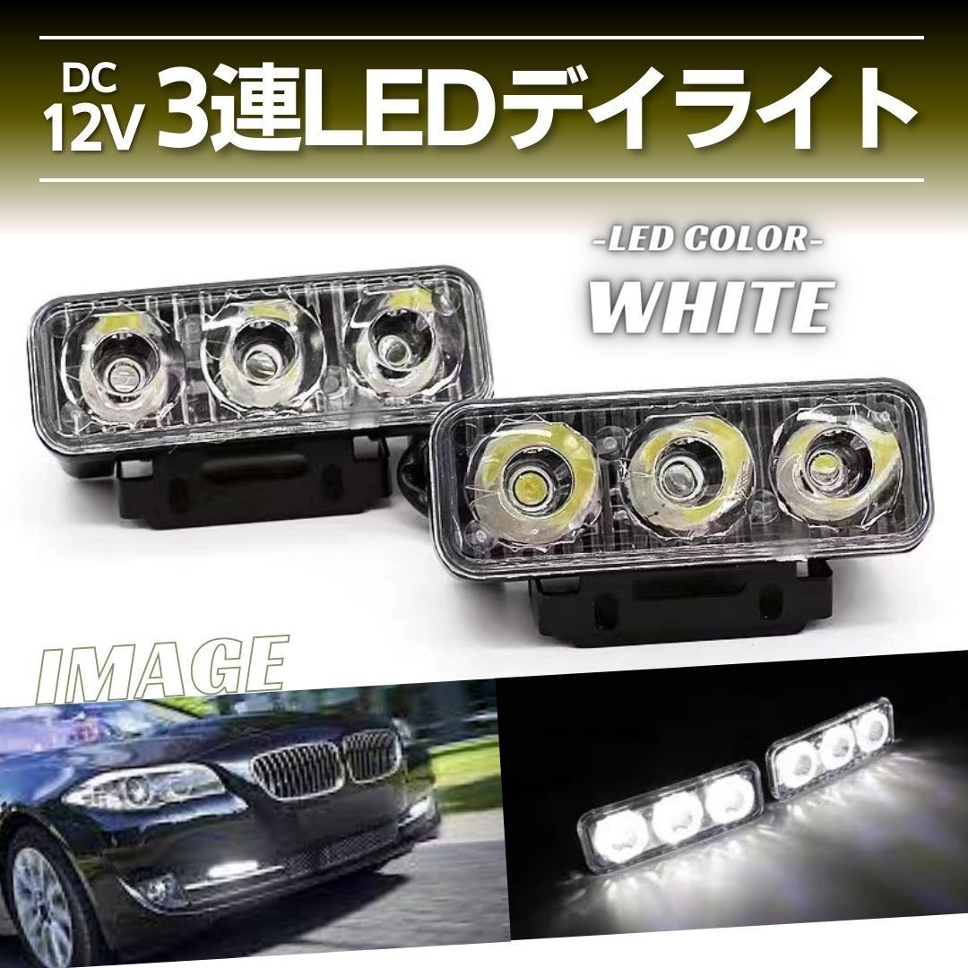 LED デイライト フォグランプ 3連 高輝度 2個セット 白 ホワイト 超軽量 高性能 汎用 車用 DC 12V アルミ