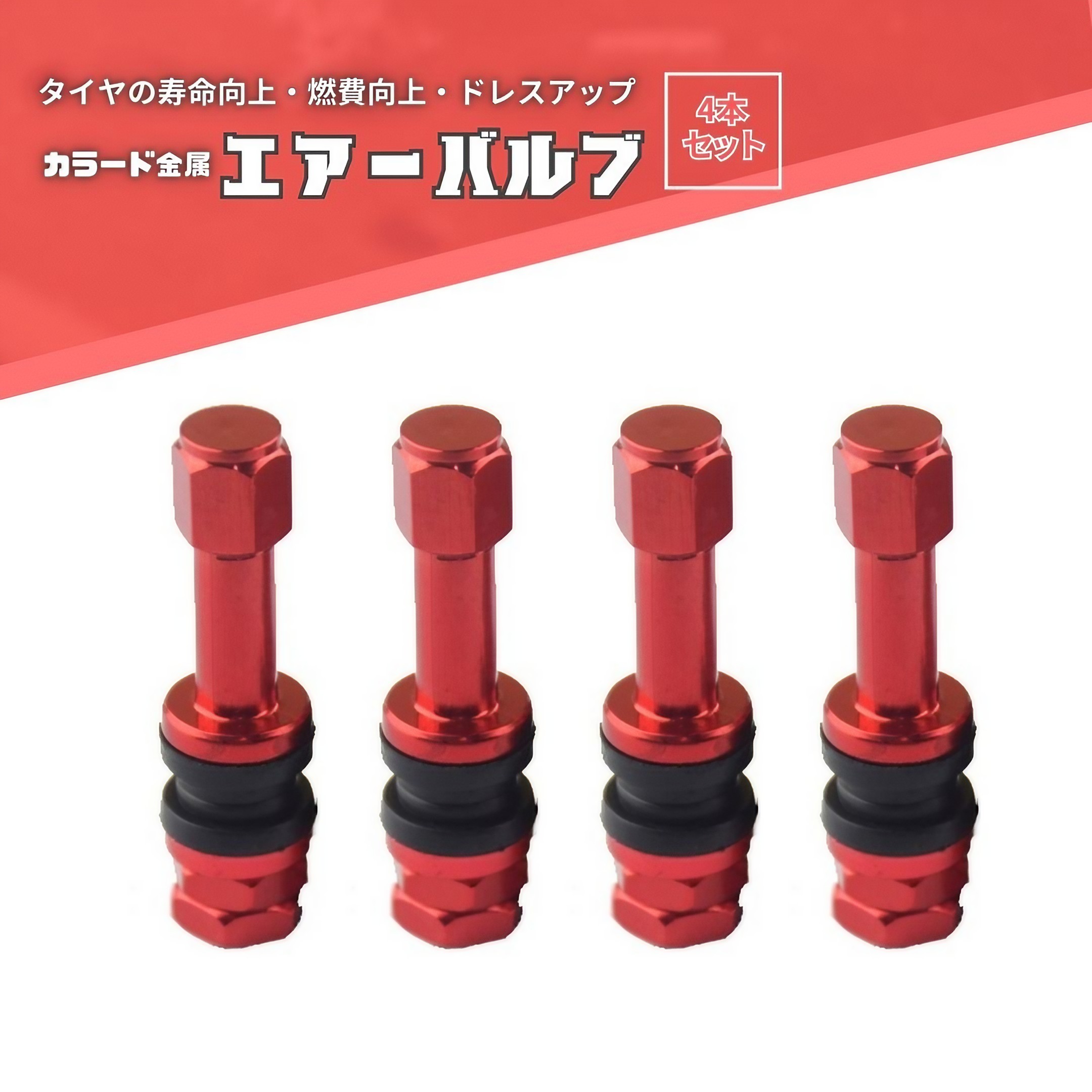 金属 エアーバルブ 4個セット レッド 赤 カラード TR48E チューブレスバルブ クランプイン エアバルブ