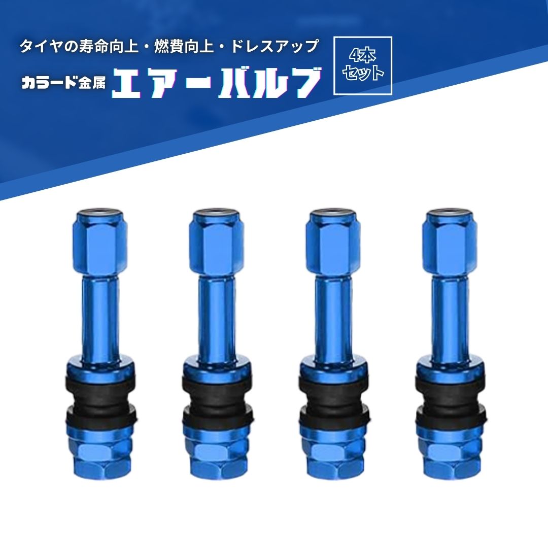金属 エアーバルブ 4個セット ブルー 青 カラード TR48E チューブレスバルブ クランプイン エアバルブ