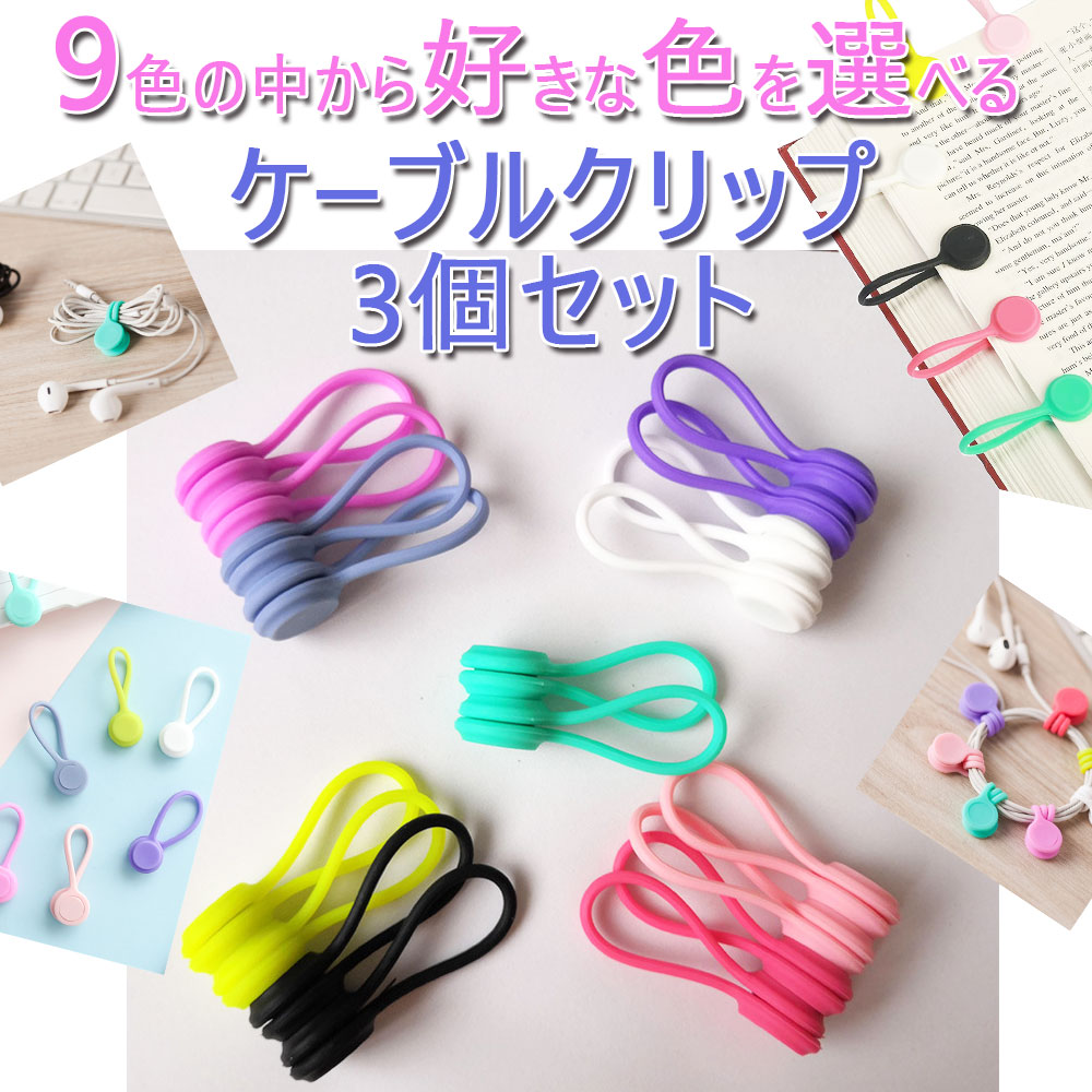ケーブルクリップ 万能クリップ マグネットクリップ コードクリップ まとめる コード収納 イヤフォン USB イヤホンクリップ 3個セット ポイント消化