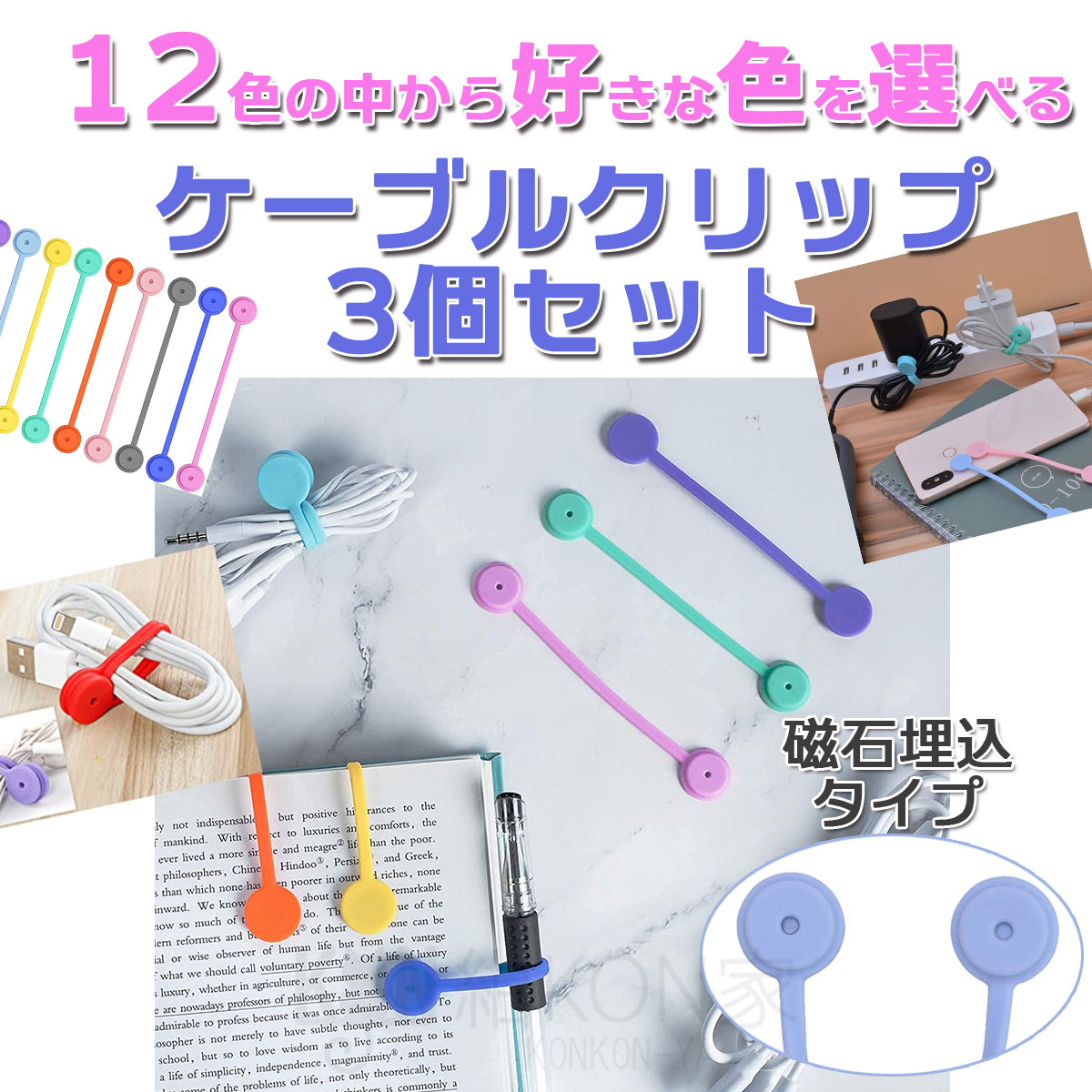 ケーブルクリップ マグネット 万能クリップ コード まとめる 収納 イヤホン クリップ 磁石埋込 ポイント消化 3個セット