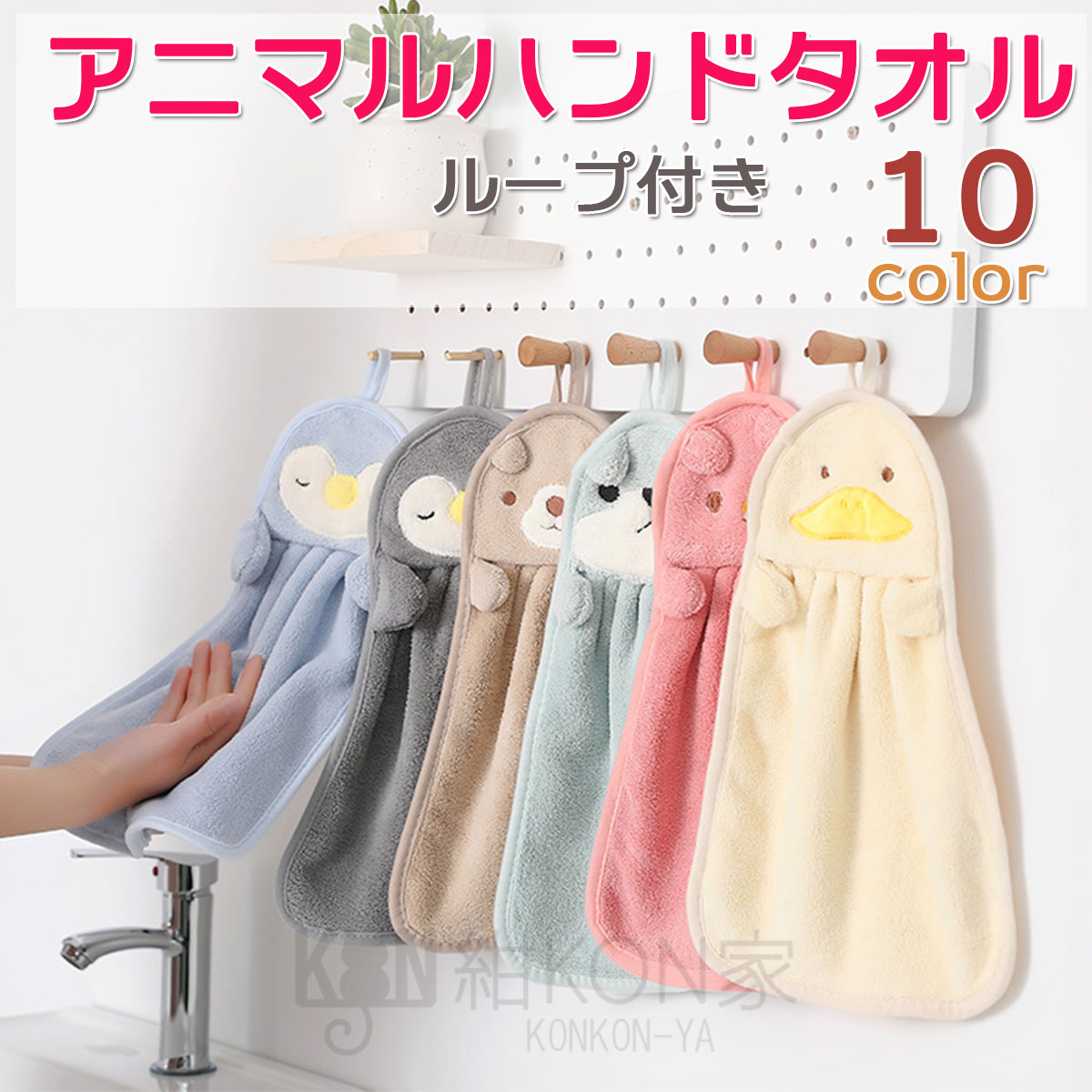 ハンドタオル ループ付き ウォッシュタオル お手拭き アニマル かわいい 動物柄 吸水性 速乾 柔らかい ポイント消化