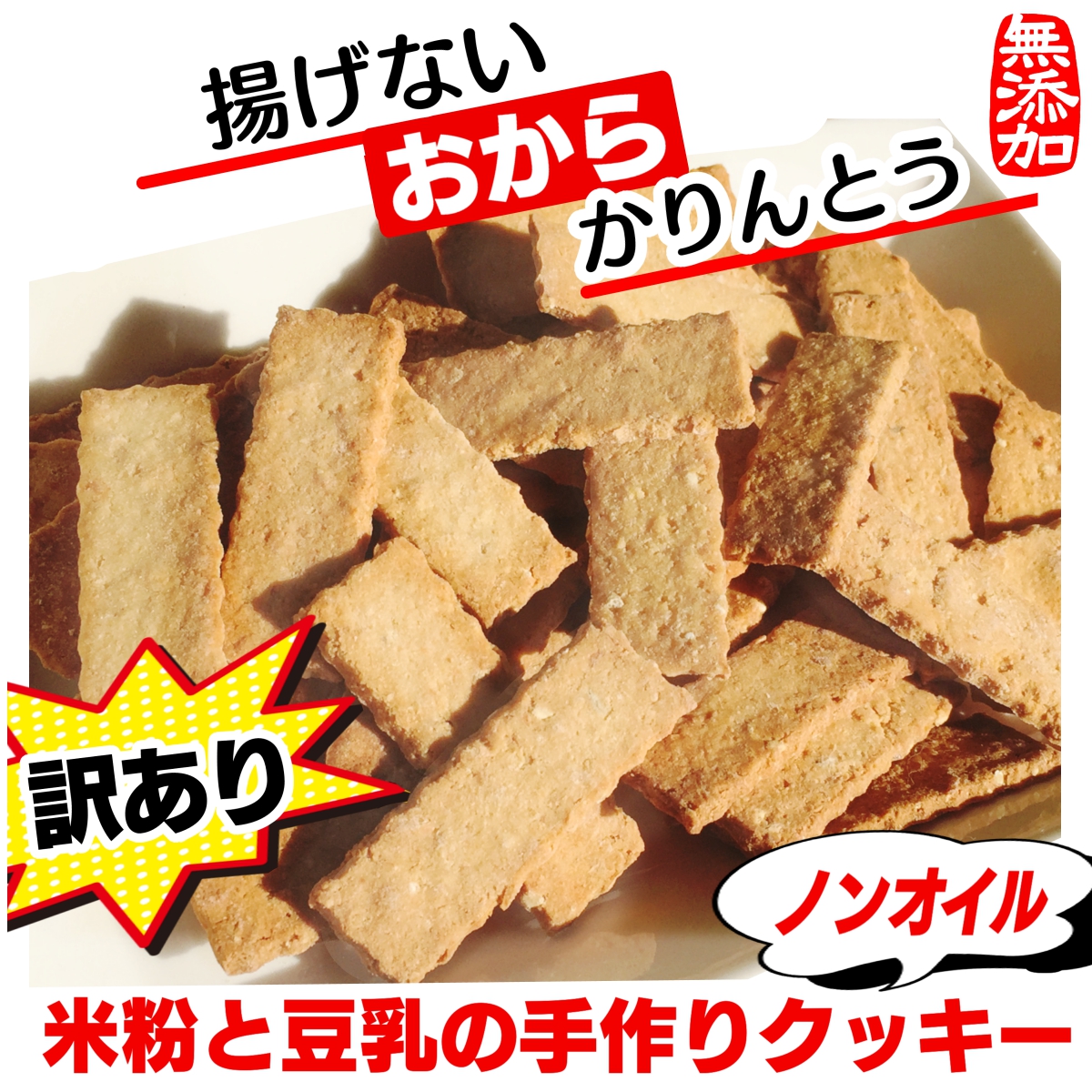 訳あり版 手作りおからクッキーノンオイル白砂糖不使用【米粉と豆乳の揚げないおからかりんとう】260g無添加 全国送料無料