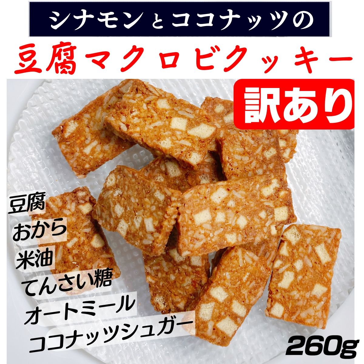 ・また、おから・オートミール・豆腐をたくさん使ったお菓子なので、水分と一緒に召し上がっていただくとお腹の中で膨らみます。