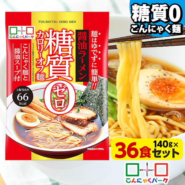 コクのある醤油スープが安心の味の糖質0カロリーオフ麺・醤油ラーメンの36袋(1箱)のセットです。こんにゃく麺とタレ付きがセットになっているので丼ぶりとお湯を準備するだけ。醤油ラーメンが簡単においしくお召し上がりいただけます。電子レンジ対応。 |