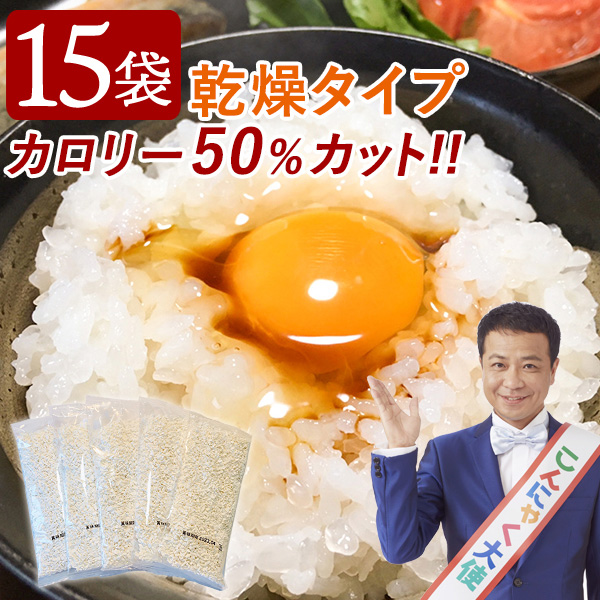 | いつものお米に混ぜて一緒に炊くだけで、手軽にカロリーオフできる乾燥こんにゃく米です。乾燥タイプは、ご飯が冷めても美味しく召し上がれるので、お弁当にもぴったりです。 |