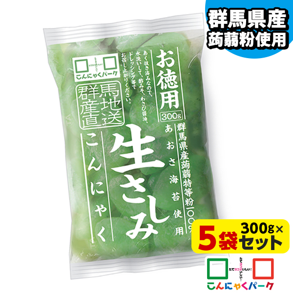 | 生のようなやわらかな食感が楽しめる生さしみこんにゃくのお徳用サイズ。群馬県産の蒟蒻粉を使用しています。あく抜き済みなので、水洗いして、酢みそやわさび醤油、ドレッシングなどをかけてお召し上がりください。 |