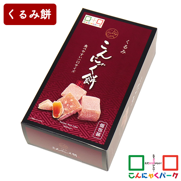 | こんにゃく糊が入ったこんにゃくくるみ餅。一口サイズで手軽に召し上がれるのが嬉しい。お茶のお供にぴったりです。 |
