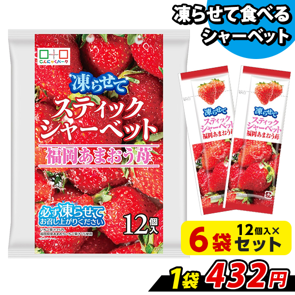 | 名称 |スティックシャーベット 福岡あまおう苺 12個入 原材料名 |果糖ぶどう糖液糖(国内製造)、砂糖、いちご果汁、こんにゃく粉 / 増粘剤(加工澱粉、増粘多糖類)、グリシン、酸味料、pH調整剤、甘味料(アセスルファムK、スクラロース)、香料、パープルキャロット色素 栄養成分 | 【1個(22g)あたり】エネルギー:20Kcal、たんぱく質:0.2g、脂質:0.0g、炭水化物:4.7g(糖質:4.7g、食物繊維:0.0g)、食塩相当量:0.07g 内容量 |12個入(1個22g)×6袋 賞味期限 |製造日より1年 保存方法 |直射日光、高温の場所を避けて保存してください 製造者 |株式会社ヨコオデイリーフーズ |