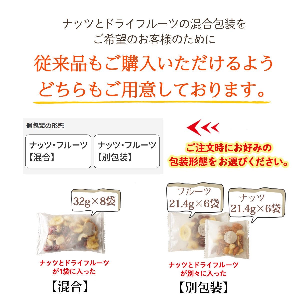 【別包装】256g(ミックスナッツ21.4g×6袋、ドライフルーツ21.4g×6袋) ※透明パッケージ