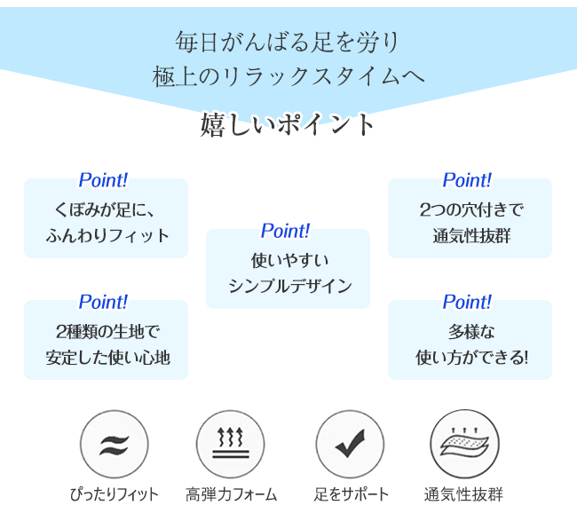 一日の疲れは足にたまりやすい…毎日がんばる足にも休息を。