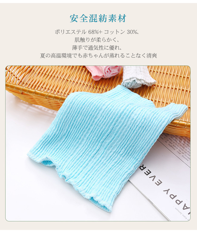 ・肌触りが柔らかく、薄手で通気性に優れ、夏の高温環境でも赤ちゃんが蒸れることなく