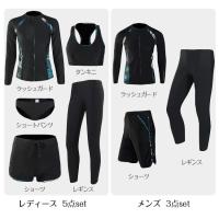 レディース5点セット:ラッシュガード+タンキニ+ショーツ+ショートパンツ+レギンス