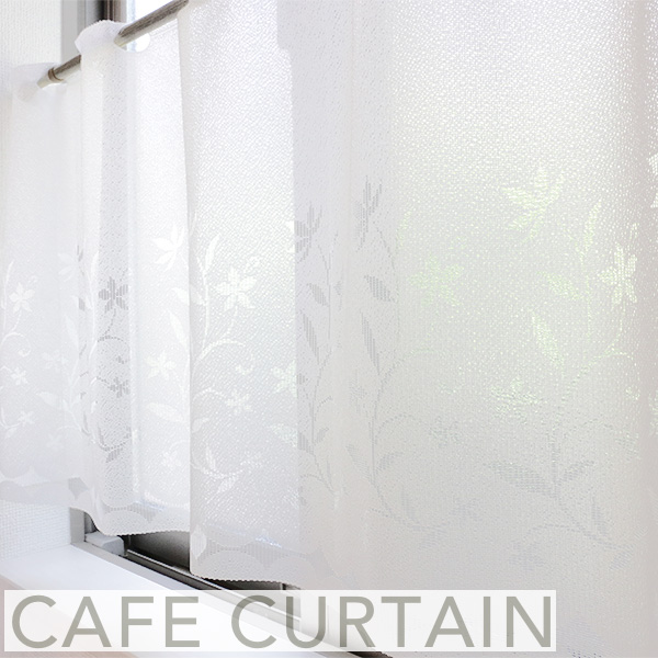 カフェカーテン リーフィアカフェ レース カーテン 幅100 丈45cm 小窓カーテン ポストイン配送 送料無料 棚飾り 目隠し キッチン 居間 小窓用