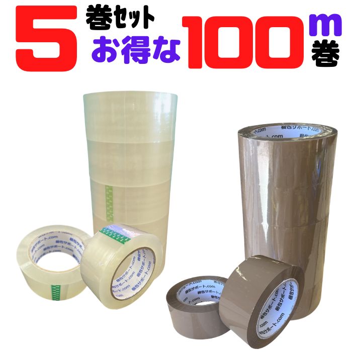 OPPテープ 厚み45μ 幅48mm 長さ100m 5巻セット 透明 カラーテープ 茶 [L1]【#45-b5】