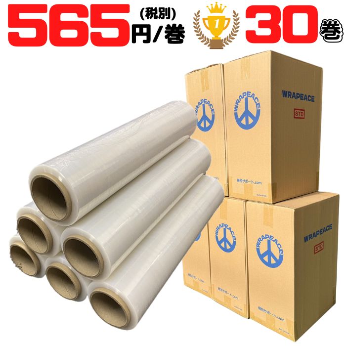 ストレッチフィルム 500mm×300m 厚み 14〜15μ ラップ 5ケース 30巻セット 法人向け WRAPEACE 爆買 [L2] 【ST15-5】